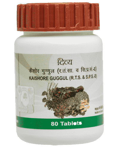 Kaishor Guggul purifies your blood of toxins introduced from the polluted environment or an unhealthy diet. It helps your body balance the production of uric acid and controls gout. It is made from herbal extracts with natural anti-inflammatory properties. It is effective in soothing wounds and ulcers. It also boosts your digestive system.