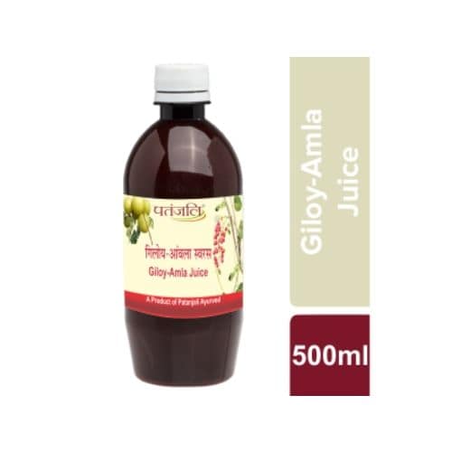 Patanjali giloy amla juice contains amla juice and giloy stem extract as the active ingredients. Giloy is a universal herb that helps boost immunity, treats chronic fever, improves digestion, treats diabetes, reduces stress and anxiety, fight respiratory problems, and useful in musculoskeletal disorders.